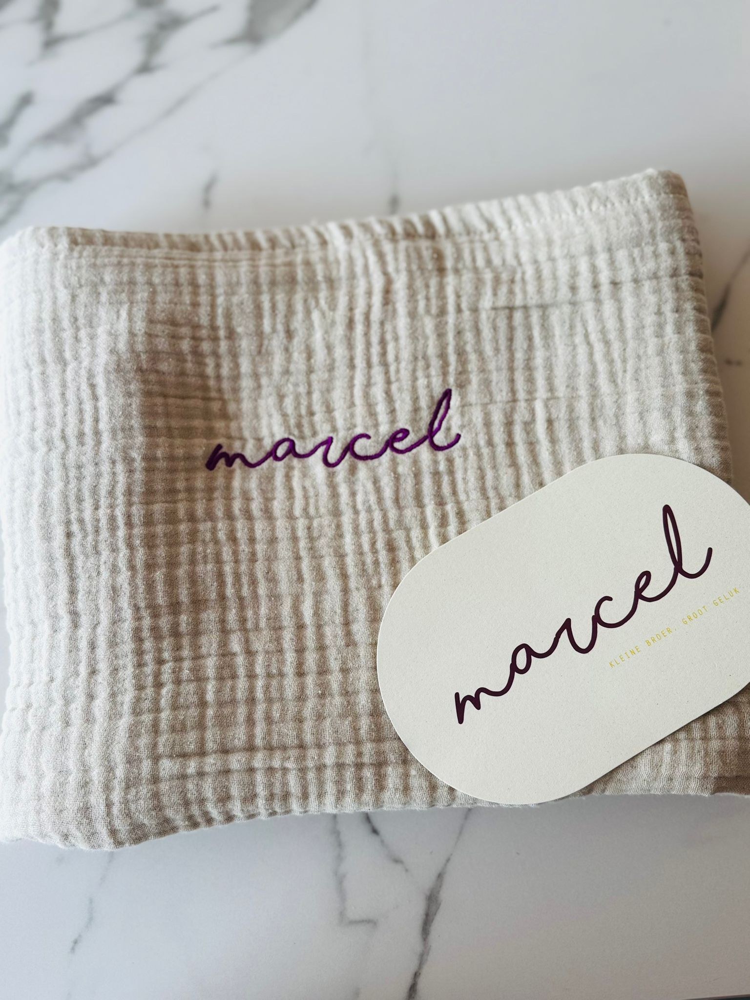 Laat de swaddle personaliseren in ons borduuratelier en maak er een uniek en liefdevol item van, perfect als kraamcadeau of voor je eigen kleintje.