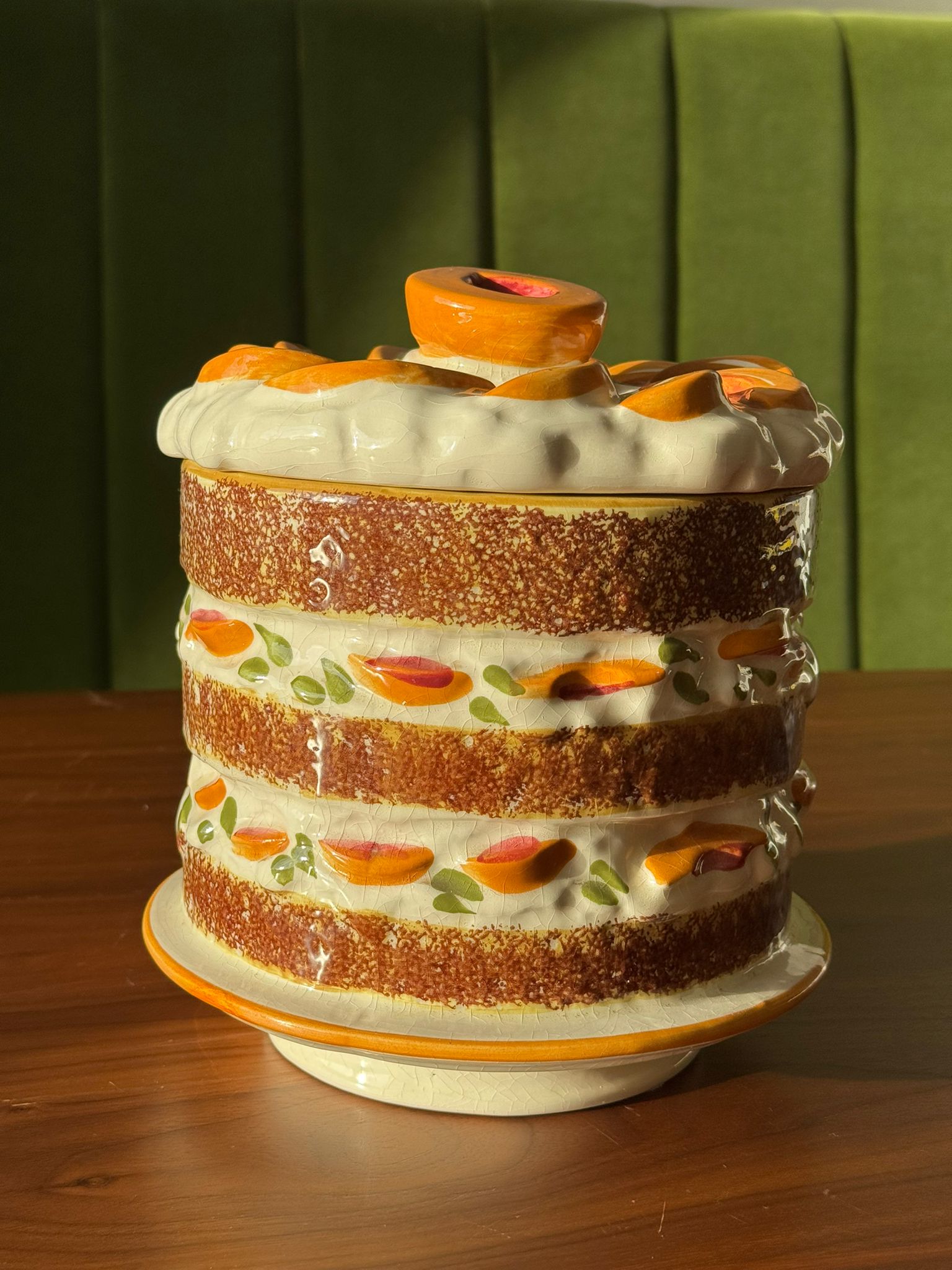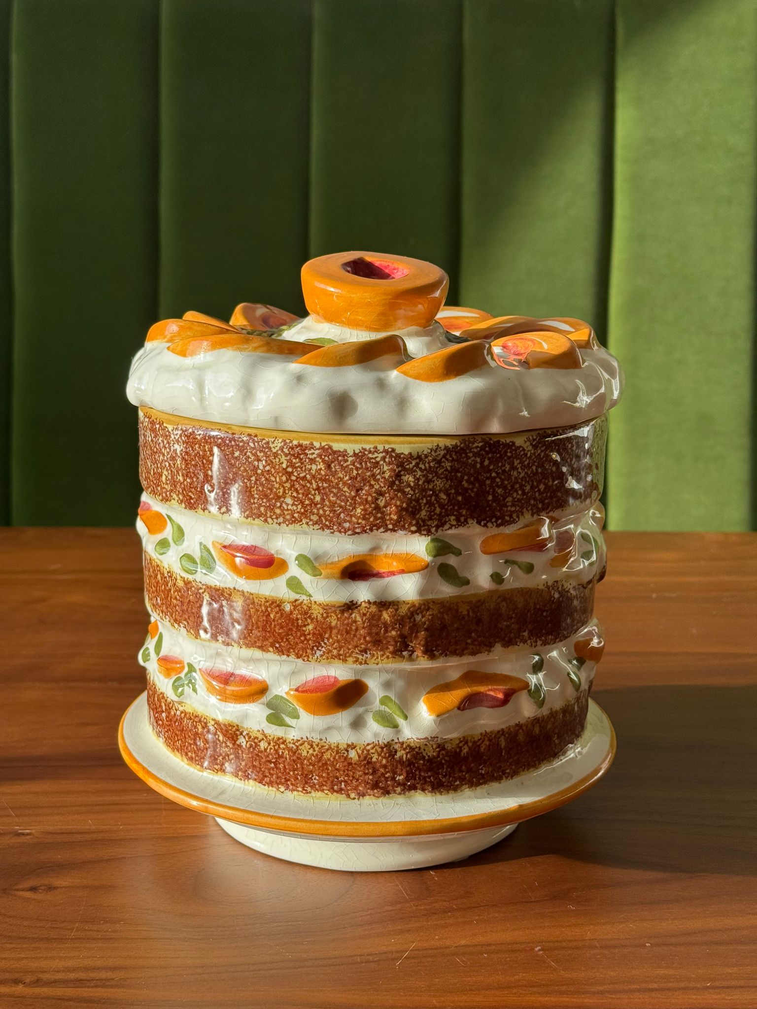 Deze cookie jar is een trompe-l'oeil vintage stuk uit de jaren 1960 van het merk Los Angeles Potteries. Het stuk is handgeschilderd en een funky toevoeging aan jouw interieur. Je kan er heerlijke delicatessen in bewaren maar natuurlijk ook wat rommel op je aanrecht in verstoppen.