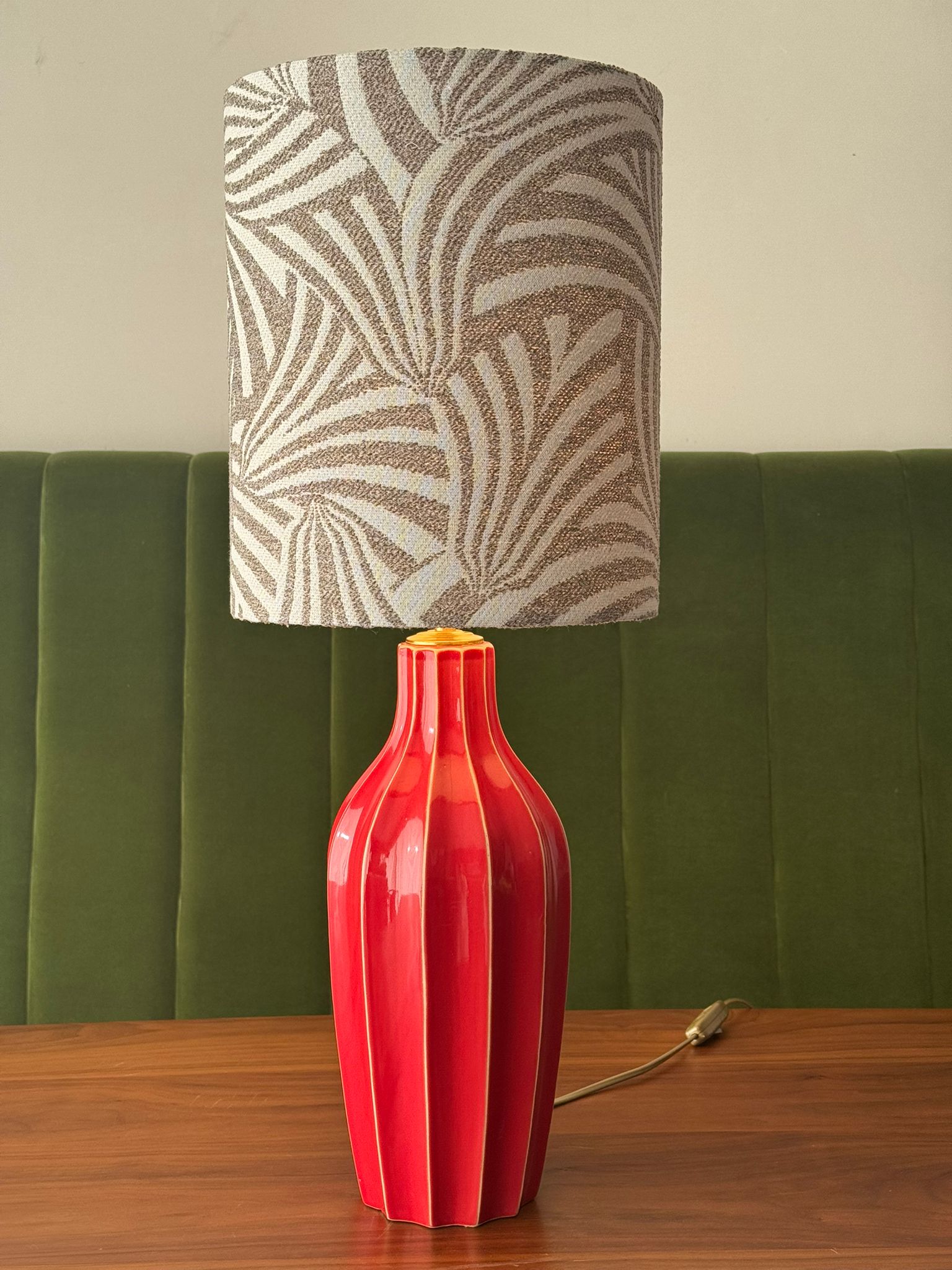 De R&T feathered lamp voegt met zijn rode voet een onverwachte toets rood toe aan je interieur. De beige-taupe lampenvoet zorgt dan weer dat het geheel ook perfect in een neutralere omgeving tot zijn recht komt. Een lamp voor iedereen die de unexpected red theory wilt uittesten.