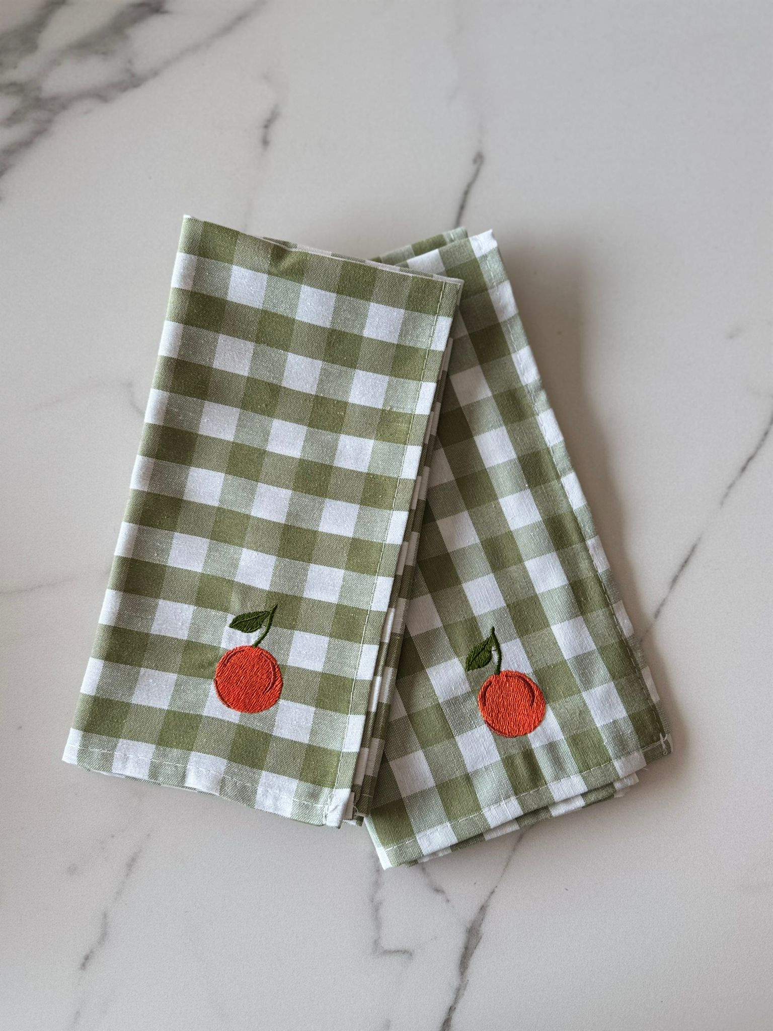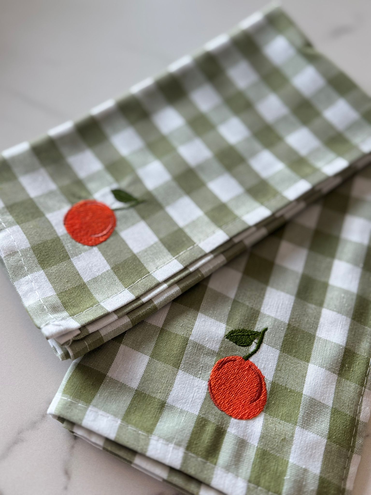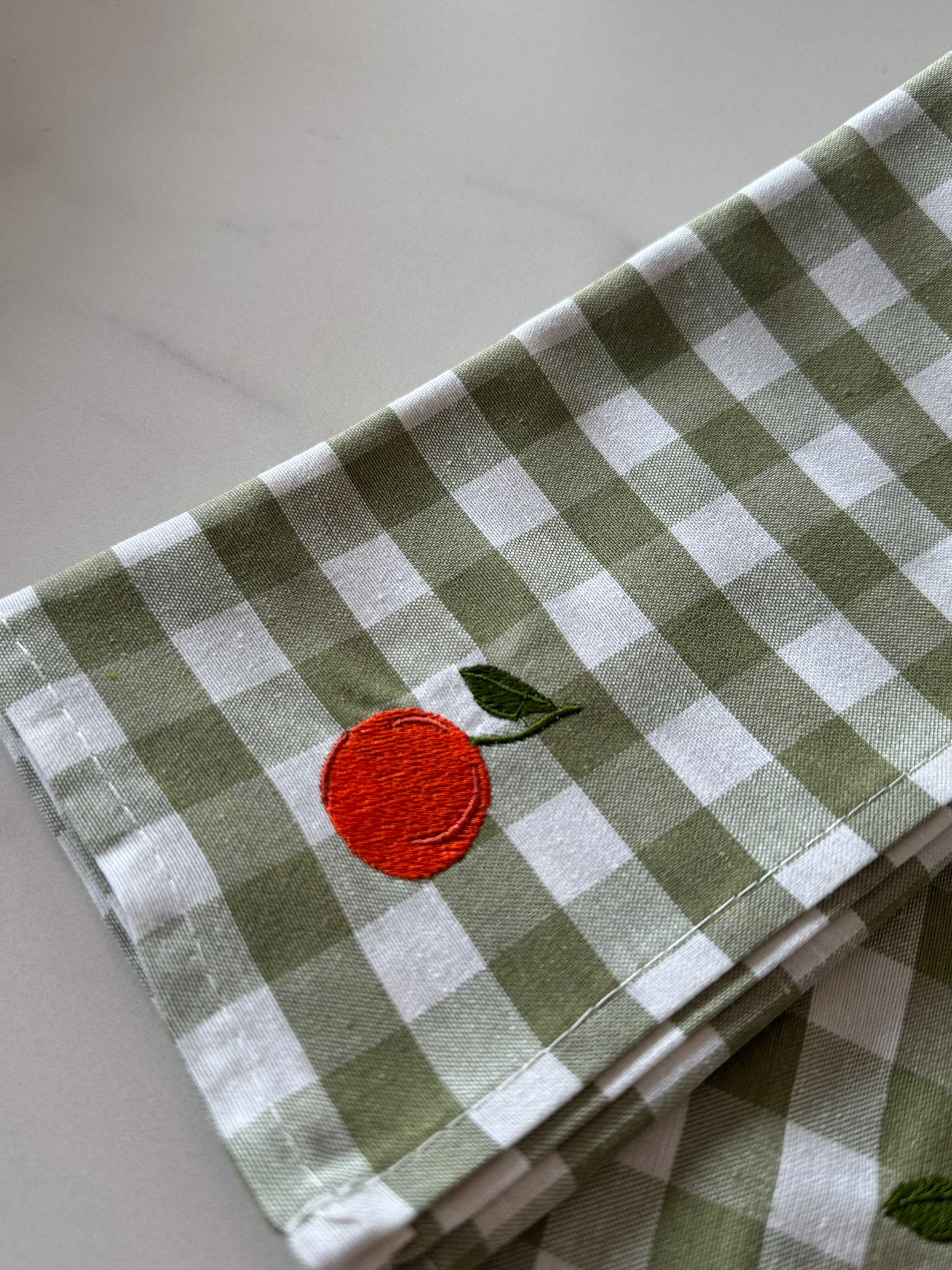 Deze groene vichy print servet met appelsien voegt meteen een zomerse touch toe aan jouw eettafel.