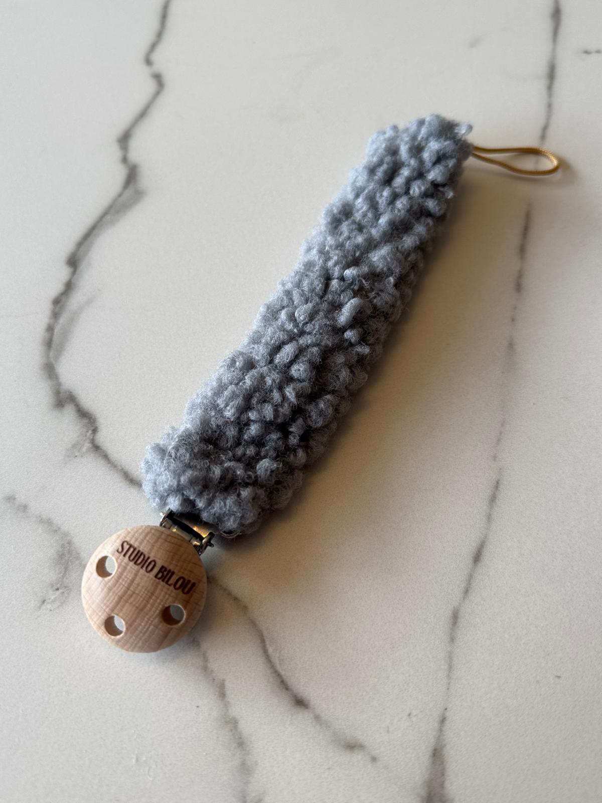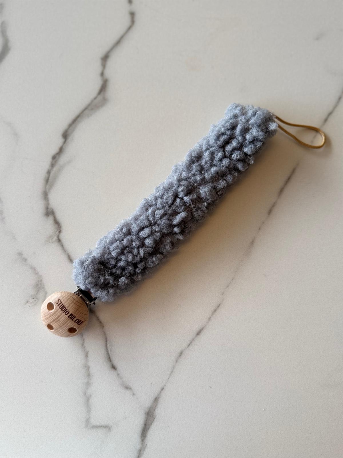 Met ons Studio Bilou speenkoord in teddy stof blijft de speen altijd dichtbij en door zijn leuke uitstraling maakt hij outfitjes helemaal af.