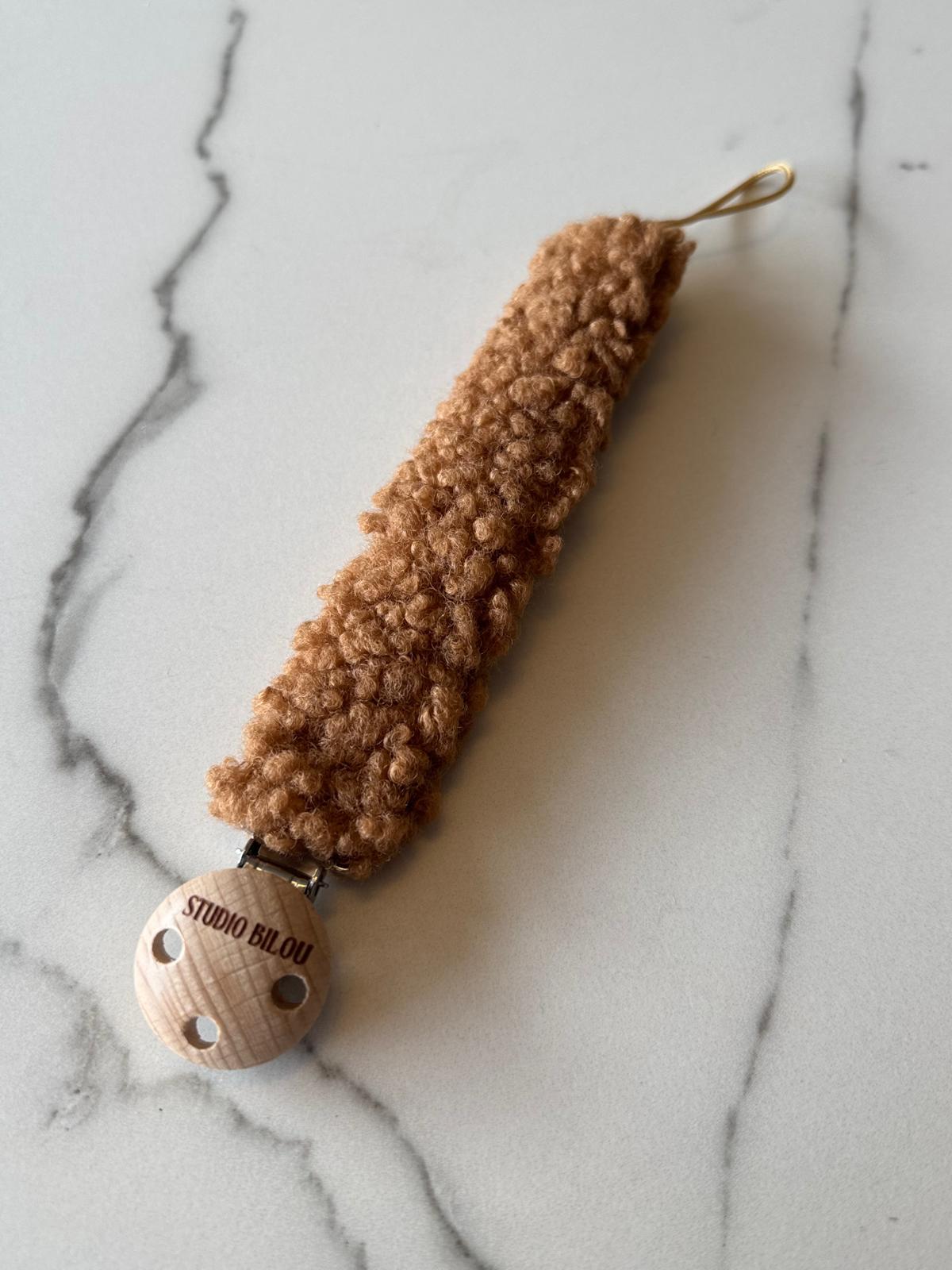 Met ons Studio Bilou speenkoord in teddy stof blijft de speen altijd dichtbij en door zijn leuke uitstraling maakt hij outfitjes helemaal af.